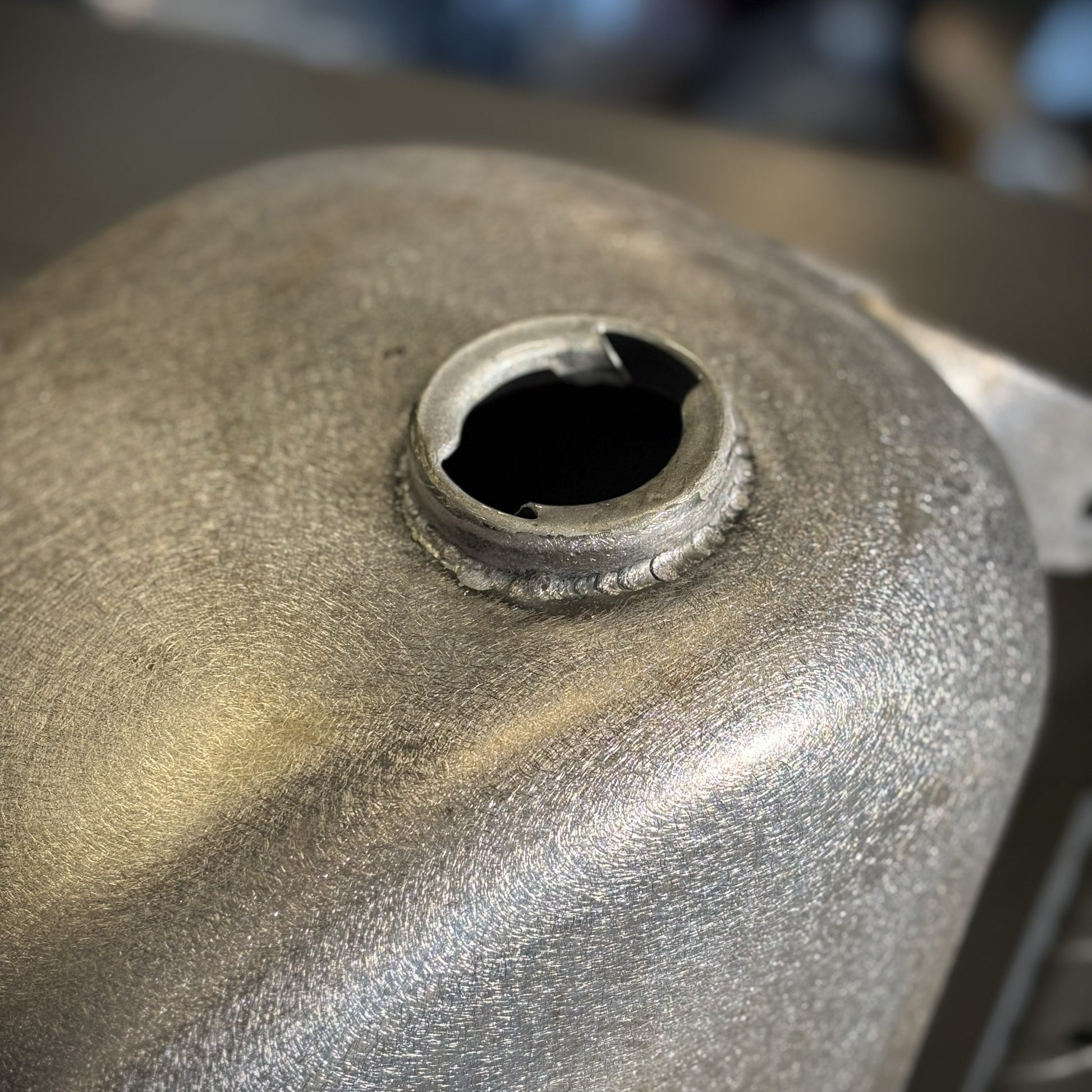 フューエルポンプは横から見えにくいよう、埋め込んで取り付けできるよう非常に手間のかかる加工を行っております。また、タンクキャップはヴィンテージスタイルのカムタイプを右側に設置しました。燃料もギリギリまで給油できる仕様です。カスタムでワンオフで制作するようなタンクを量販品として販売できるように設計しました。