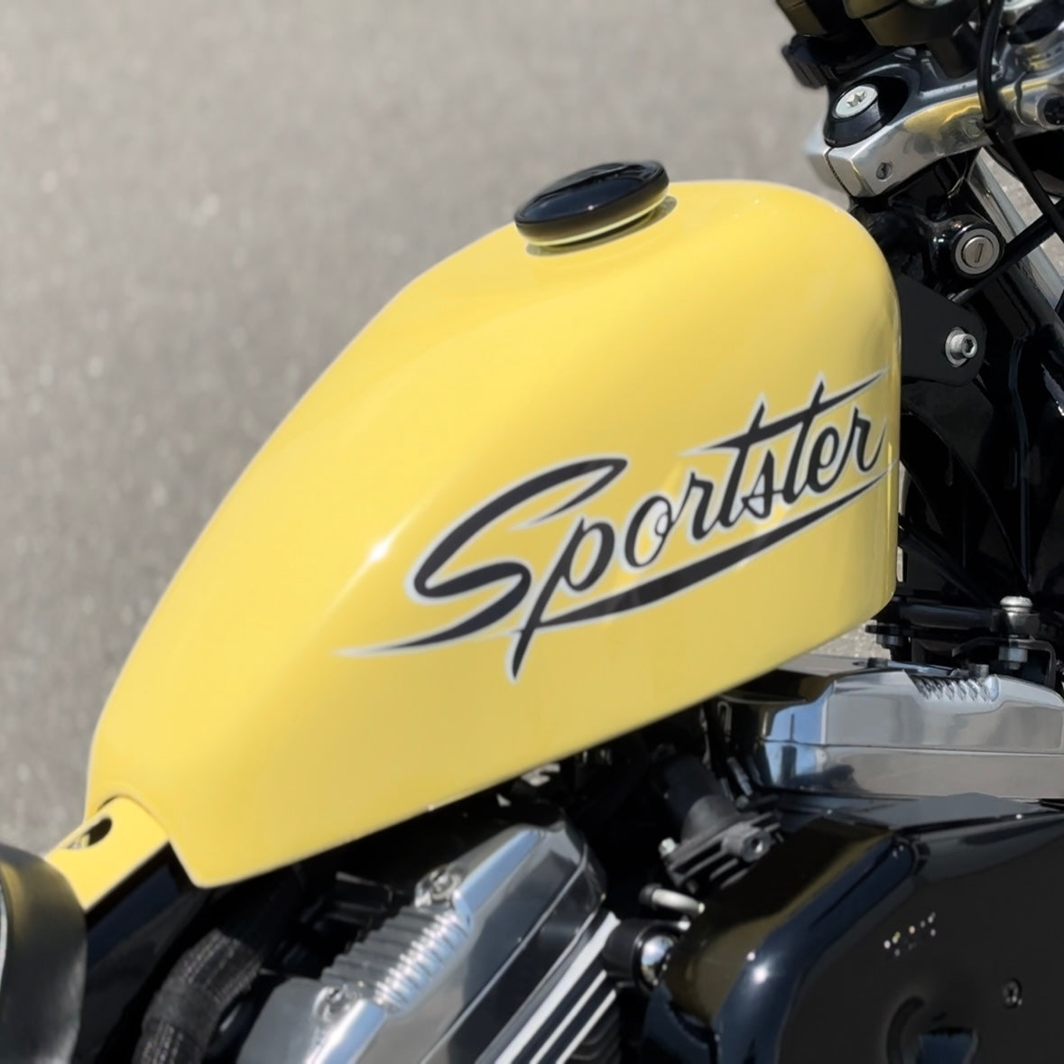 インジェクションスポーツスターにかなり低い位置で取り付けができます。タンク底部はフレームのアンダーフレームと平行に設計しているため、ボバースタイルやフラットトラックスタイルなどのカスタムにはピッタリです。