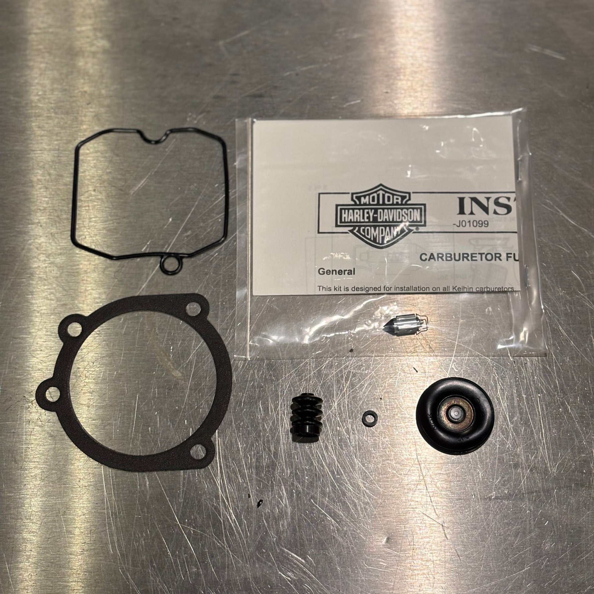 キャブレター内部のパーツは全てハーレー純正。エアクリーナーカバーガスケットのみジェームス製になります。(メタルフォームラバーのため耐久性がこちらの方が良いです。)