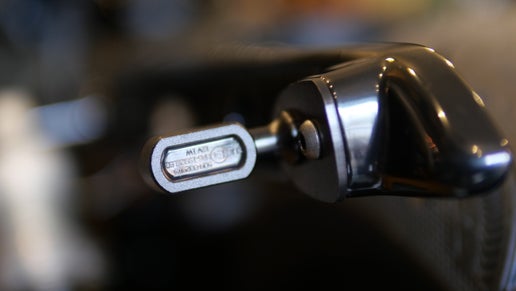 ナンバーベースはアルミ製で、軽量化のため多数のドリルド仕様。